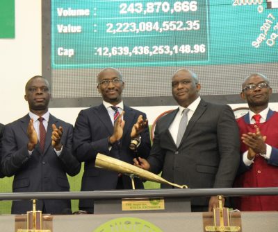 Post Views: 1,067 Caption: Andrew Otike-Odibi, Managing Director/CEO, C&I Leasing PLC (2nd right), sounding the gong to...
