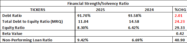 Efficiency improved during the period, as seen in the interest expense to gross earnings ratio (IE to GE) that declined to 21.88% from 24.46, indicating better funding, cost management and improved margin optimization. The effective tax rate remained relatively stable at 25.05%, showing consistency in tax obligations without significant distortions to net earnings. However, Return on Equity (ROE) declined to 21.94% from 26.47%, suggesting that the rapid growth in equity—driven by retained earnings—outpaced profit growth, thereby diluting returns to shareholders.