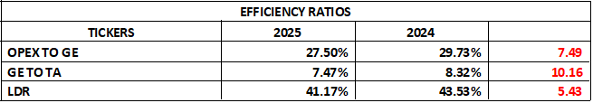 - Loan-to-Deposit Ratio: LDR dropped from 43.53% to 41.17%, and can be interpreted as: