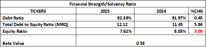 - Equity Ratio: Equity now accounts for only 7.62% of total financing, dropping from 8.03%. This decline confirms that the balance sheet is becoming more debt-heavy and less equity buffered. A shrinking equity can weaken loss-absorbing capacity.