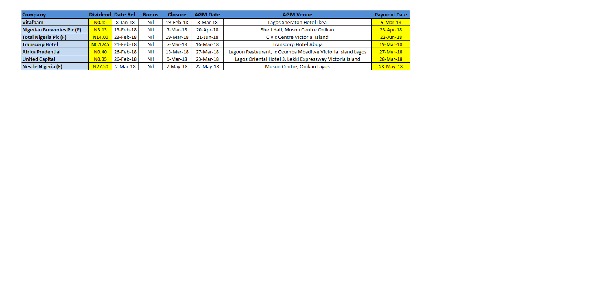 The company has consistently paid a dividend since 2013, but its 2016 payout was down by 50% to 30 kobo from 60 kobo in 2015. Based on reality in the market and economic climate , we advise investors in the stock to HOLD and watch it, as well as the market trend.