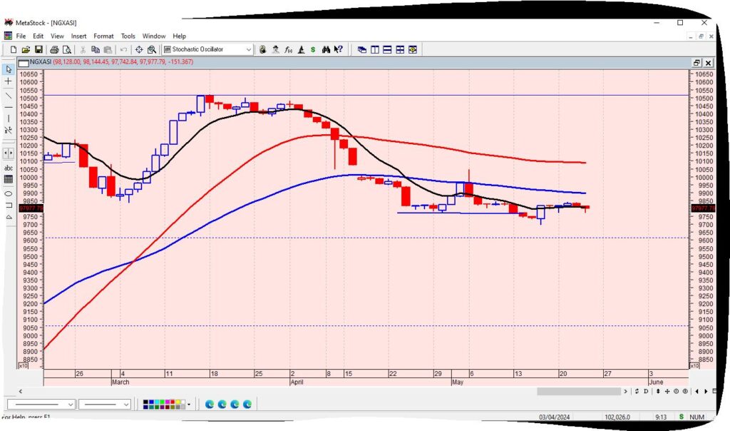 The benchmark NGXASI pulled back, despite resisting decline, to extend its two consecutive sessions of bear-run on a low traded volume and negative market internals in the midst of selling sentiment and position taking in some major sectors and ahead of more corporate earnings inflow. All eyes are still on the Q1 GDP expected to reveal the state of the nation’s economy in the first three months of 2024 and the performance of government’s economic reforms policies so far in the last one year. Macroeconomic indices remain mixed and are, indeed, contracting in the face of continuing foreign exchange market challenges and the high interest rate environment.