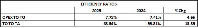 - Operating Expenses to Turnover: This ratio shows the proportion of revenue consumed by operating expenses such as administration, marketing, and distribution, plus general expenses. The slight increase of 4.66% tells us that: the company spent a little more on operating expenses activities this year relative to revenue. However, the increase is very small and still within a healthy range. Possible reasons are: expansion activities, distribution network growth, and inflation in administrative costs. But overall, the company maintains a strong cost discipline.