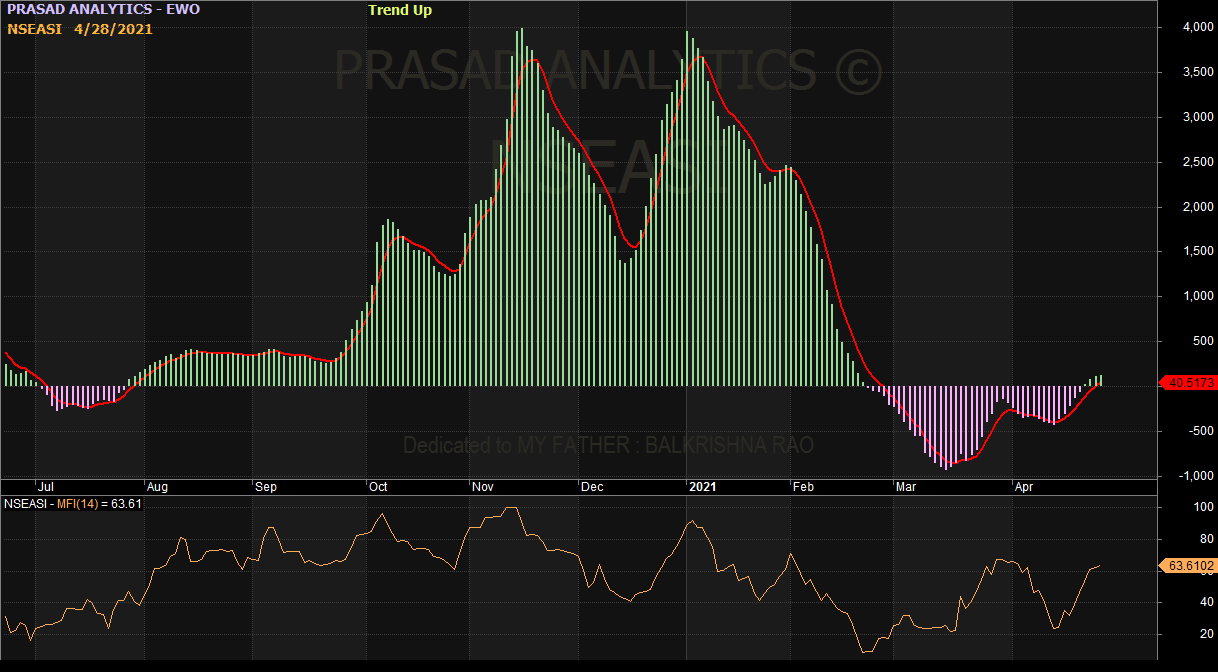 The NSE’s index action and indicators are heading in the same direction on a low traded volume and positive buying sentiments in the midst of rising yield in bond and TB.