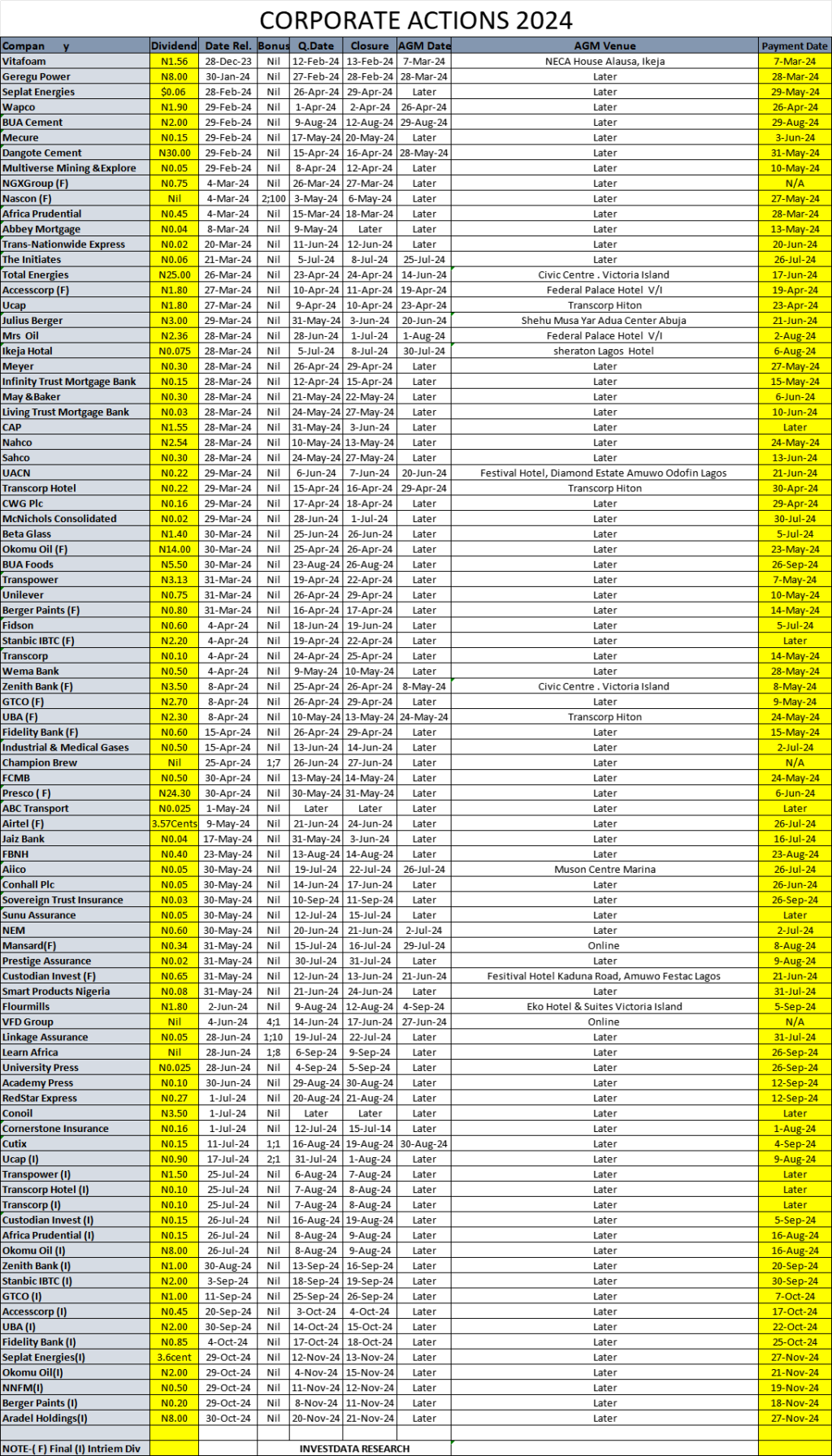 Equities Corporate Actions On NGX As Of Friday, January 3, 2025 Editor January 4, 2025 1 min read 220 Post Views: 173 Continue Reading Previous: The Power of Sentiment When Investing, Trading Any Financial InstrumentsNext: Corporate Actions On NGX As Of Friday, January 10, 2025 Trending Now SEC Tasks Civil Servants On Capital Market Investment For Wealth Creation, Retirement Security 1 SEC Tasks Civil Servants On Capital Market Investment For Wealth Creation, Retirement Security February 10, 2026 Nigeria’s Central Banks Approves $150,000 Weekly FX Sale To Retailers 2 Nigeria’s Central Banks Approves $150,000 Weekly FX Sale To Retailers February 10, 2026 Samad Rabiu Charges African Leaders To Move Continent Towards Large-Scale Production 3 Samad Rabiu Charges African Leaders To Move Continent Towards Large-Scale Production February 10, 2026 Japan Vote Propels Stocks, Yen To Fresh Highs, As Takaichi Trade Returns 4 Japan Vote Propels Stocks, Yen To Fresh Highs, As Takaichi Trade Returns February 9, 2026 Oando Plc: Speculative, Overvalued Stock Sailing On Tax Credit, In Need Of Fresh Capital 5 Oando Plc: Speculative, Overvalued Stock Sailing On Tax Credit, In Need Of Fresh Capital February 9, 2026 Corporate Actions On Nigerian Bourse As Of February 6, 2026 6 Corporate Actions On Nigerian Bourse As Of February 6, 2026 February 9, 2026 Related Stories Corporate Actions On Nigerian Bourse As Of February 6, 2026 1 min read Equities Corporate Actions On Nigerian Bourse As Of February 6, 2026 February 9, 2026 86 Delayed: NGX Halts Ranging Market On Positive Reactions To Corporate Earnings Ahead Dividend Announcement 6 min read Equities Delayed: NGX Halts Ranging Market On Positive Reactions To Corporate Earnings Ahead Dividend Announcement February 9, 2026 169 NGX Sustains Bullish Momentum As Seplat Hits Record High On Strong Large-Cap Demand 4 min read Equities NGX Sustains Bullish Momentum As Seplat Hits Record High On Strong Large-Cap Demand February 6, 2026 244 NGX Extends Bullish Momentum Midweek As Banking Heavyweights Drive Rally 3 min read Equities NGX Extends Bullish Momentum Midweek As Banking Heavyweights Drive Rally February 5, 2026 236 Bargain Hunting Keeps Nigerian Bourse In The Green As Banks Lead 3 min read Equities Bargain Hunting Keeps Nigerian Bourse In The Green As Banks Lead February 4, 2026 280 NGX Closes Flat-to-Positive As Stock Picking Persists 3 min read Equities NGX Closes Flat-to-Positive As Stock Picking Persists February 3, 2026 268