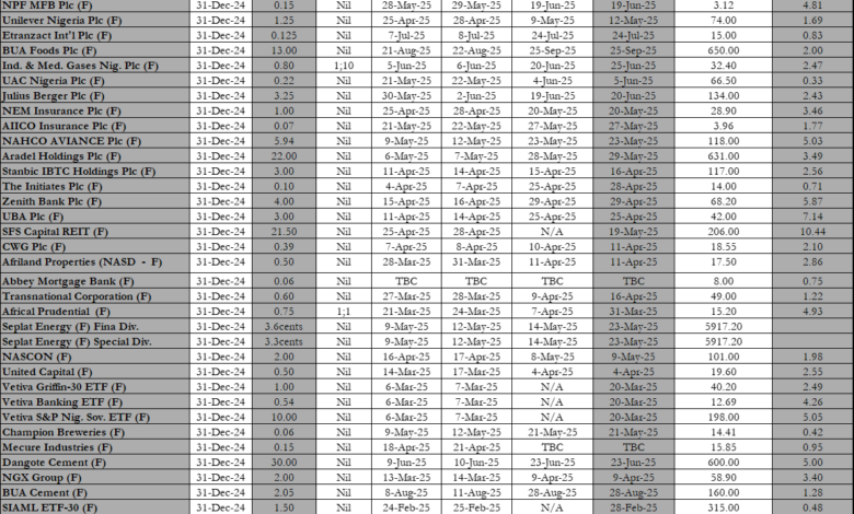 Home/Equities/Corporate Actions On Nigeran Exchange As Of Friday, December 5, 2025 Equities Corporate Actions On Nigeran Exchange As Of Friday, December 5, 2025 EditorDecember 6, 2025 24 Less than a minute Facebook Twitter WhatsApp Post Views: 1 EditorDecember 6, 2025 24 Less than a minute Facebook Twitter WhatsApp Facebook Twitter WhatsApp Share via Email