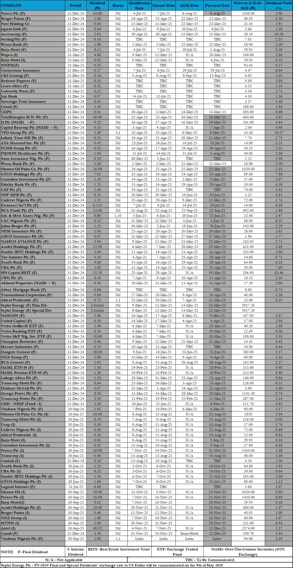 Equities Corporate Actions On Nigerian Bourse As Of Wednesday, December 24, 2025 Editor December 27, 2025 1 min read 240 Post Views: 53 Continue Reading Previous: NGX Ends Christmas Eve Higher As Banking, Consumer Stocks AdvanceNext: Nigerian Stocks Extend Santa Claus Rally As Composite Index Hits Fresh High Trending Now Nigerian Bourse Ranges On Profit Taking Ahead Earnings Expectations, Sector Rotation 1 Nigerian Bourse Ranges On Profit Taking Ahead Earnings Expectations, Sector Rotation January 24, 2026 Corporate Actions On NGX As Of Friday, January 23, 2026 2 Corporate Actions On NGX As Of Friday, January 23, 2026 January 24, 2026 NGX Ends Week On Cautious Positive Note As Selective Buying Offsets Profit-Taking Pressures 3 NGX Ends Week On Cautious Positive Note As Selective Buying Offsets Profit-Taking Pressures January 24, 2026 NGX Ends Bearish On Heavyweight Selloffs Amid Cautious Sentiment 4 NGX Ends Bearish On Heavyweight Selloffs Amid Cautious Sentiment January 23, 2026 Oil Slides as Geopolitical Tensions Ease, But Supply Concerns Linger 5 Oil Slides as Geopolitical Tensions Ease, But Supply Concerns Linger January 23, 2026 BUA Cement, CBMI Seal US$240m Deal For 3mtpa Sokoto Plant Expansion In 20 Months 6 BUA Cement, CBMI Seal US$240m Deal For 3mtpa Sokoto Plant Expansion In 20 Months January 22, 2026 Related Stories Corporate Actions On NGX As Of Friday, January 23, 2026 1 min read Equities Corporate Actions On NGX As Of Friday, January 23, 2026 January 24, 2026 50 NGX Ends Week On Cautious Positive Note As Selective Buying Offsets Profit-Taking Pressures 3 min read Equities NGX Ends Week On Cautious Positive Note As Selective Buying Offsets Profit-Taking Pressures January 24, 2026 61 NGX Ends Bearish On Heavyweight Selloffs Amid Cautious Sentiment 2 min read Equities NGX Ends Bearish On Heavyweight Selloffs Amid Cautious Sentiment January 23, 2026 147 Cautious Bargain Hunting Lifts Equities Marginally Amid Mixed Sector Performance 3 min read Equities Cautious Bargain Hunting Lifts Equities Marginally Amid Mixed Sector Performance January 22, 2026 157 Nigerian Equities Post Modest Rebound As Bargain Hunting, Oil Strength Support Market 3 min read Equities Nigerian Equities Post Modest Rebound As Bargain Hunting, Oil Strength Support Market January 21, 2026 191 Nigerian Equities End Flat-To-Bearish As Profit Taking Offsets Broad Buying, Composite Index Holds Key Support 3 min read Equities Nigerian Equities End Flat-To-Bearish As Profit Taking Offsets Broad Buying, Composite Index Holds Key Support January 20, 2026 195
