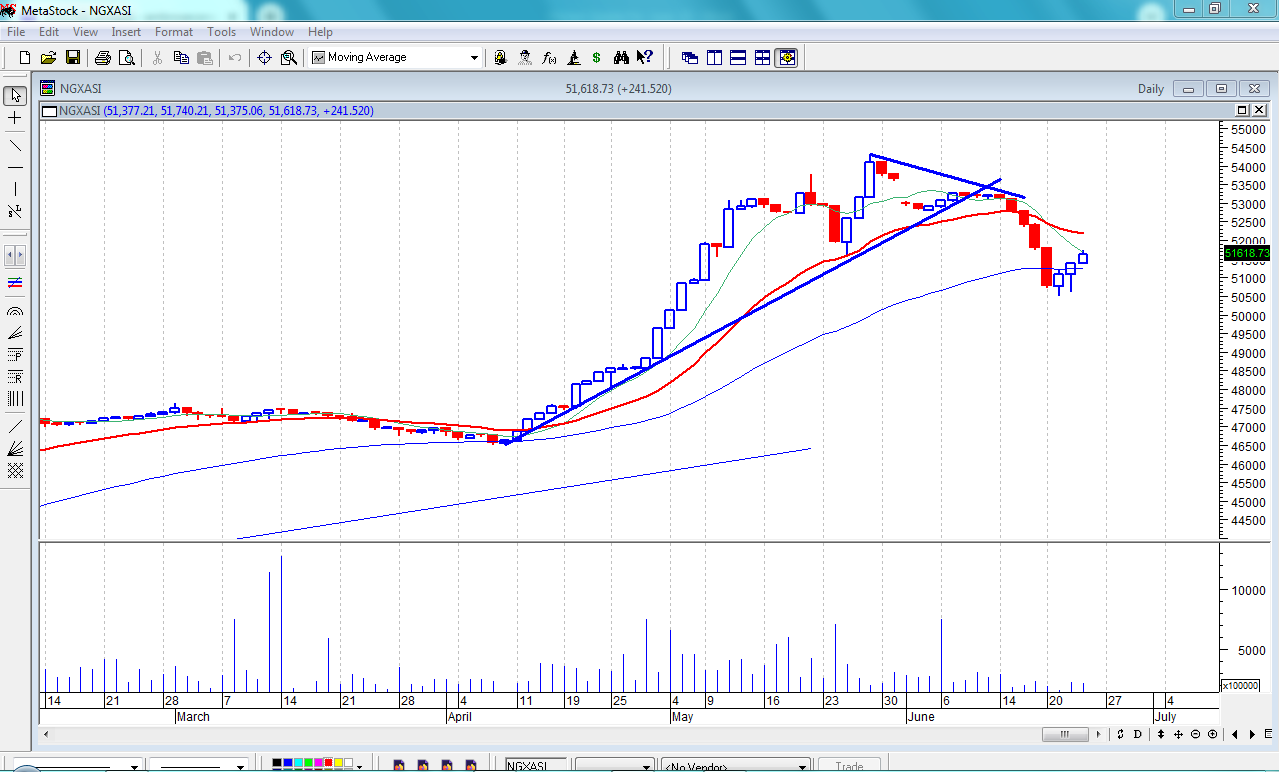 Technically, the NGX index action looks good at the current rebound but needs to breakout the ‘T-Line’ and 20-day moving average to confirm strong strength behind the new move, as the market remains relatively strong, since the beginning of the week. The strong resistance level has been within the 51,804bps region, while volatility persists and corrects towards the next breakout is sported around 51,740.21bps. Should the index break this point, the next visible resistance is 51,847.43bps.
