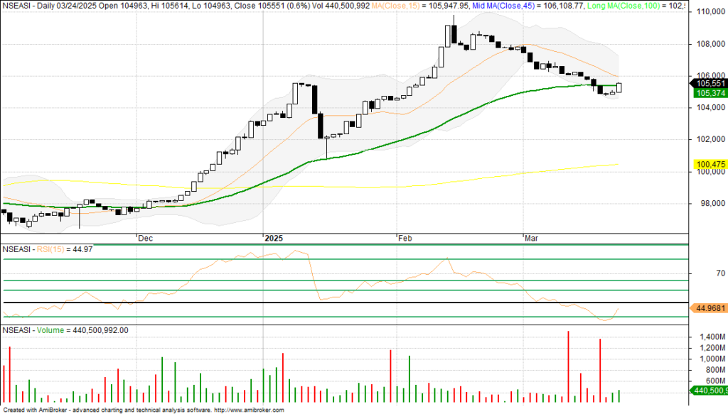 Trading activities for the last week of March and first quarter of the year started on a positive note on the Nigerian Exchange, thereby extending the bull transition for a second session, although on a low traded volume and positive market breadth. This signaled an uptrend on the strength of expected financial service sector earnings reports, as shown by the impressive earnings report from the United Bank of Africa Plc, particularly its corporate action of a final dividend of N3.00 per share which excited the market. The numbers triggered bargain hunting in banking stocks and others that impacted the benchmark NGX All-Share index positively to close higher, just as all eyes are on more audited financial statements inflow this week and early April ahead of the statutory deadline for submission of 2024 accounts.