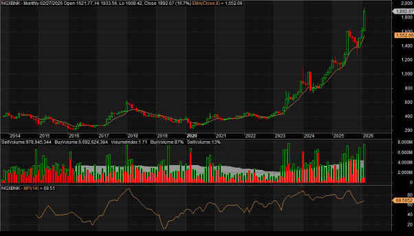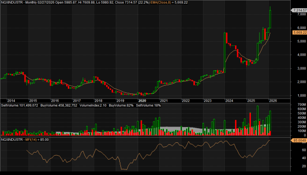 Index’s action in February was clearly a strongly bullish for the Nigerian equities. The index moved in a steady upward trend for most of the period, printing higher highs and higher lows — a classic sign that buyers were firmly in control.