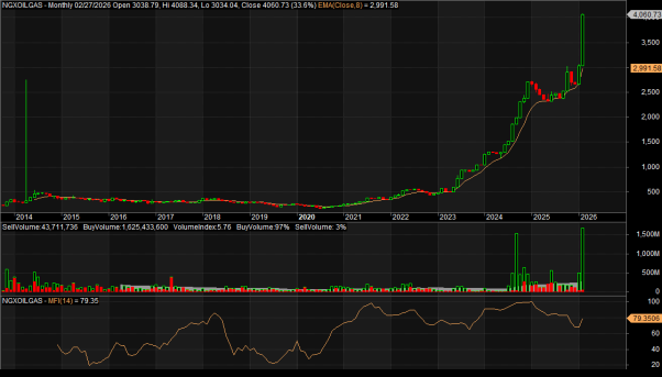 The breakout above 170,000 early in the month set the tone, and once the market crossed 180,000, momentum accelerated. Volume expanded noticeably during weeks two and three, which suggests that the rally was supported by real participation, not just light speculative trading. That kind of volume-backed move usually gives a trend more credibility.