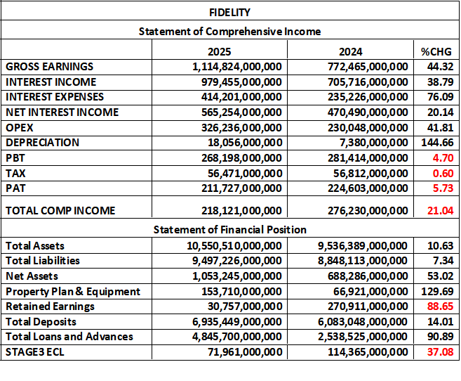 At the end of the nine-month period, the management of Fidelity Bank Plc reported Gross Earnings of N1.114 trillion, a 44.32% improvement on the N772.465 billion posted at the end of the similar period of 2024. Of this, Interest Income stood at N979.455 billion versus N705.716 billion in the preceding nine-month period, while Interest Expenses rose to N414.201 billion from N235.226 billion in the corresponding quarter of 2024. Thus, Net Interest Income is estimated at N565.254 billion, against N470.490 billion in the similar period of last year.