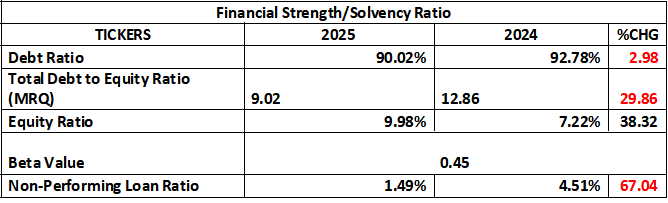- Debt Ratio: This Ratio moved from 92.78% to 90.02%. Note that a decline in debt ratio means the bank is now less leveraged compared to the preceding nine month period. This is expected after a capital raise, because new equity reduces relative reliance on liabilities. Nevertheless, in our opinion, a 90% debt ratio is still high. Although for a bank, this is yet within tolerable limit and normal, since deposits are classified as liabilities. We can therefore say, Fidelity Bank’s balance sheet is slightly stronger and less risky than in the prior nine months.