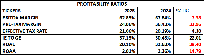 Nevertheless, it safe to conclude that the banks profitability in this regard is still very strong at 62.83%, showing robust core banking profitability, even if slightly weakened.