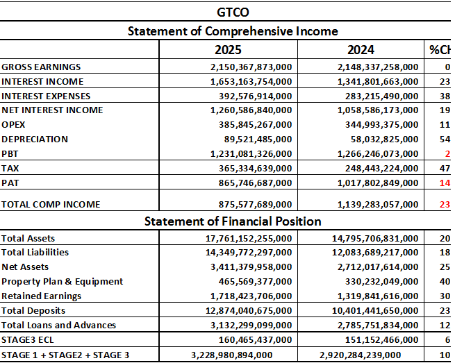 Overall, GTCO maintained a solid financial position with strong capital growth and liquidity, although the rise in credit risk metrics calls for careful monitoring.
