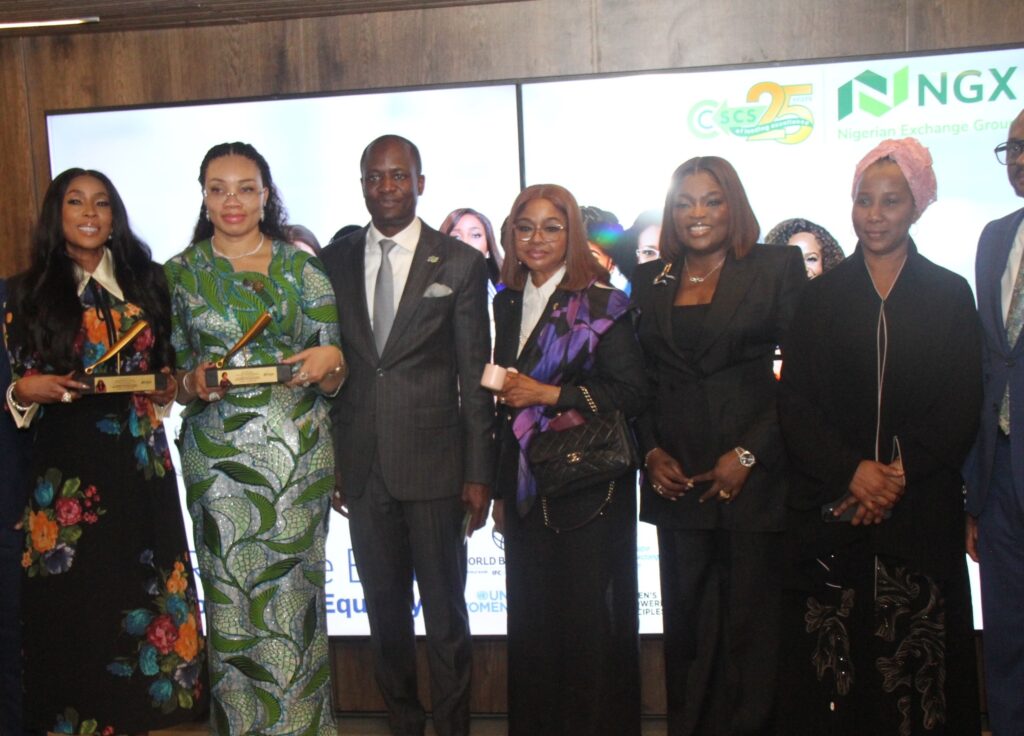 Caption: From left, CEO, Ebony Life Group, Ms. Mosunmola “Mo” Abudu; First Lady of Imo State, Her Excellency, Barrister Mrs. Chioma Uzodimma; Group Managing Director/CEO, NGX Group, Temi Popoola; Group Managing Director/CEO of Futureview Group, Elizabeth Ebi; Founder, FAAN, Ms. Funke Akindele; Director, NGX, Ms. Ummahani Ahmad Amin, during the NGX Group 2026 Ring the Bell for Gender Equality at NGX today in Lagos.