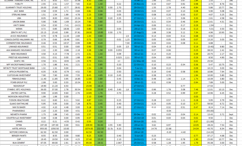 Home/News/Investdata Price, Earnings Tracking For The Week Ended January 7, 2022 News Investdata Price, Earnings Tracking For The Week Ended January 7, 2022 January 9, 2022 24 Less than a minute Facebook Twitter WhatsApp Post Views: 388 January 9, 2022 24 Less than a minute Facebook Twitter WhatsApp Facebook Twitter WhatsApp Share via Email