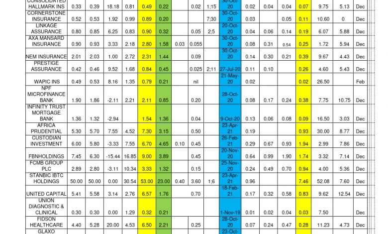 Home/Equities/Investdata Price, Earnings Tracking For Week Ended April 30, 2021 Equities Investdata Price, Earnings Tracking For Week Ended April 30, 2021 EditorMay 4, 2021 33 Less than a minute Facebook Twitter WhatsApp Post Views: 342 EditorMay 4, 2021 33 Less than a minute Facebook Twitter WhatsApp Facebook Twitter WhatsApp Share via Email