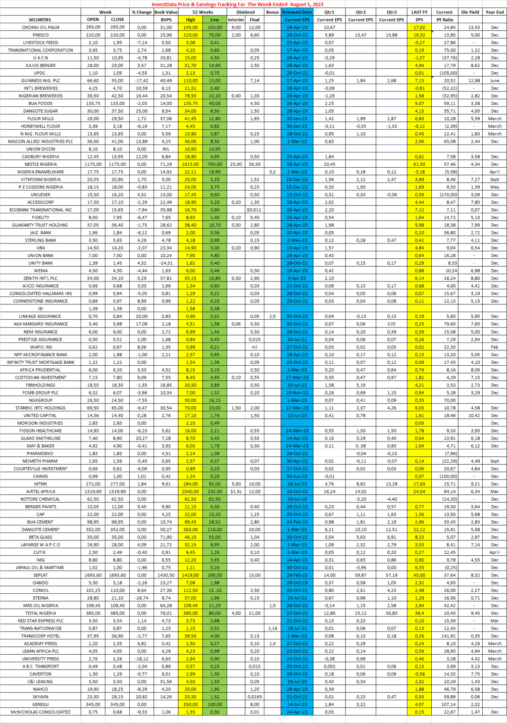 Home/Equities/Investdata Price Earnings Tracking For Week Ended August 4, 2023 Equities Investdata Price Earnings Tracking For Week Ended August 4, 2023 EditorAugust 6, 2023 0 Less than a minute Facebook Twitter WhatsApp Post Views: 142 EditorAugust 6, 2023 0 Less than a minute Facebook Twitter WhatsApp Facebook Twitter WhatsApp Share via Email