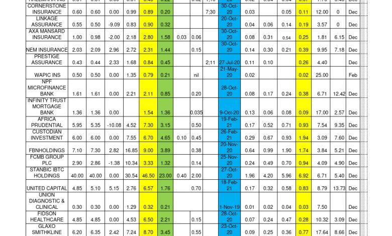 Home/Equities/Investdata Price, Earnings Tracking For Week Ended Friday, March 19, 2021 Equities Investdata Price, Earnings Tracking For Week Ended Friday, March 19, 2021 EditorMarch 20, 2021 25 Less than a minute Facebook Twitter WhatsApp Post Views: 556 EditorMarch 20, 2021 25 Less than a minute Facebook Twitter WhatsApp Facebook Twitter WhatsApp Share via Email
