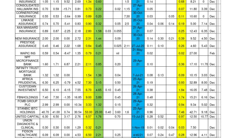 Home/Equities/Investdata Price, Earnings Tracking For Week Ended July 16, 2021 Equities Investdata Price, Earnings Tracking For Week Ended July 16, 2021 July 17, 2021 27 Less than a minute Facebook Twitter WhatsApp Post Views: 274 July 17, 2021 27 Less than a minute Facebook Twitter WhatsApp Facebook Twitter WhatsApp Share via Email
