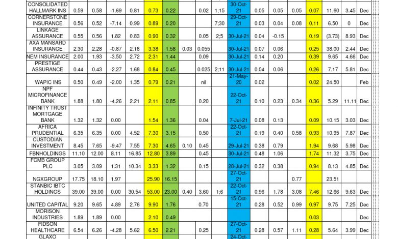 Home/Equities/Investdata Price, Earnings Tracking For Week Ended November 12, 2021 Equities Investdata Price, Earnings Tracking For Week Ended November 12, 2021 November 14, 2021 25 Less than a minute Facebook Twitter WhatsApp Post Views: 212 November 14, 2021 25 Less than a minute Facebook Twitter WhatsApp Facebook Twitter WhatsApp Share via Email