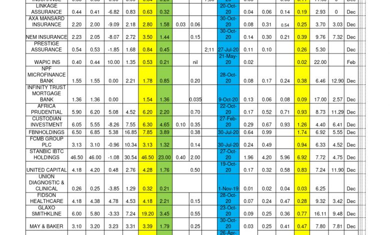 Investdata Price, Earnings Tracking For Week Ended November 6, 2020