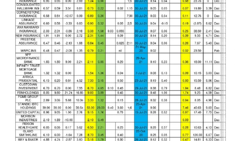 Home/Equities/Investdata Price, Earnings Tracking For Week Ended October 8, 2021 Equities Investdata Price, Earnings Tracking For Week Ended October 8, 2021 October 9, 2021 23 Less than a minute Facebook Twitter WhatsApp Post Views: 243 October 9, 2021 23 Less than a minute Facebook Twitter WhatsApp Facebook Twitter WhatsApp Share via Email