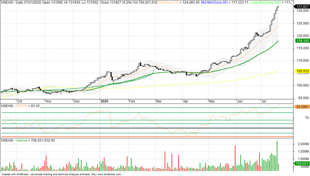 The broader market seems weak, despite the price appreciation of Nestle Nigeria, Presco and others which lifted the benchmark NGX All-Share index to a new historic high of 131,827 basis points on negative market internals that indicates a weakening market and pullback is underway, due to the ongoing profit taking. However, the possibility of continued uptrend at this point is a function of the strength of the half-year earnings reports whenever they are released. Also, the numbers that came from Wapco after trading closed on Monday beat market expectation, as top and bottom lines grew significantly by 75% and 352% respectively to N517bn and N133bn in the first six months of 2025. This translated to earnings per share of N8.24 as against the N1.82 each reported in the same period of last year. This should give investors insight of what they should expect from others in that sector or industry.