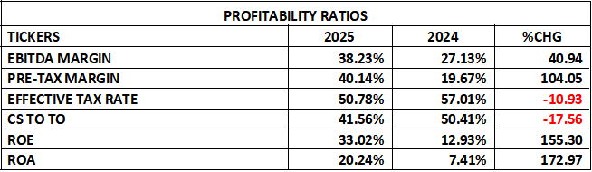 Equity Ratio: The Equity Ratio equally moved higher to 61.30% as against 57.33% estimated at the end of the corresponding period of 2024. An increased equity ratio shows that more of the company’s assets are financed by equity rather than debt. The implications are: a stronger net worth position, improved solvency, greater long-term financial flexibility, and more room for future borrowing if needed. This aligns with the falling debt metrics, confirming an overall strengthening of the balance sheet.