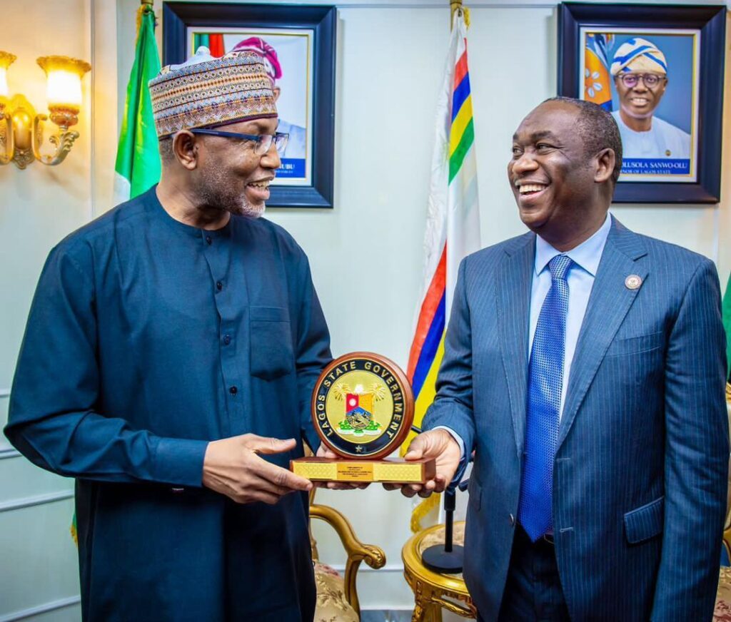 Caption: From left, Director-General Securities and Exchange Commission (SEC), Lamido Yuguda, receiving a gift from the Deputy Governor of Lagos State Dr. Obafemi Hamzat, when he led a team from the commission on a visit to the State Governor in preparation for the West Africa Capital Market Conference scheduled to hold in Lagos from October 25 to 26, 2023