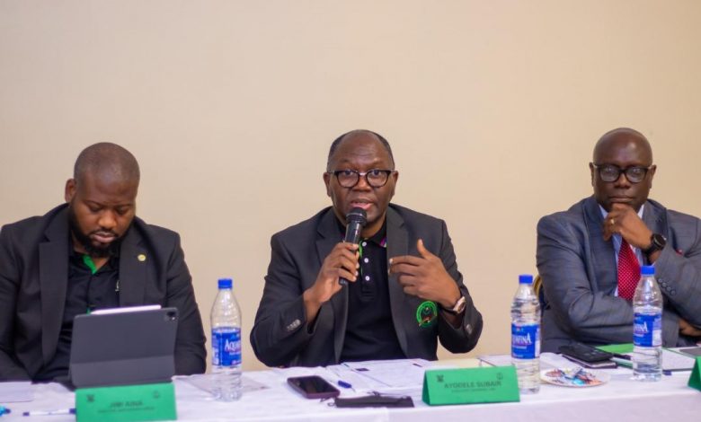 Caption: From left, Director, New Growth Areas, Olujimi Aina; Executive Chairman, Lagos Internal Revenue Service (LIRS), Ayodele Subair; and Managing Director, O. M Associates, Olufemi Oguntade, during a parley on deduction of withholding tax on commission with stakeholders in the Fast Moving Consumer Goods, gaming and multi-level marketing sector, in Alausa, Ikeja on Thursday, May 12, 2022.