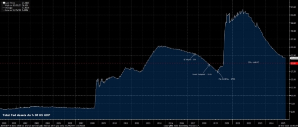 Jerome Powell remarks about QT has attracted a fair bit of attention. The Fed’s total holdings of Treasuries and mortgage-backed securities are now nearing 21% of US GDP, a level broadly viewed as neutral based on the cycle before the pandemic. This signals that the Fed may be nearing the end of its quantitative tightening, reassuring investors that liquidity conditions are unlikely to tighten further.