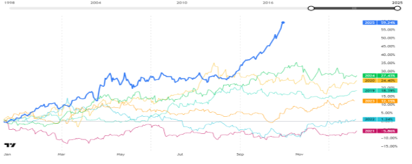 Overall, markets are navigating a new phase of rebalancing that blends temporary stability in trade dynamics with lingering valuation risks in equities. Gold continues to shine as a preferred shiny metal, oil trades within a narrow but cautious band and the dollar oscillates in a tight range as investors weigh policy and positioning.