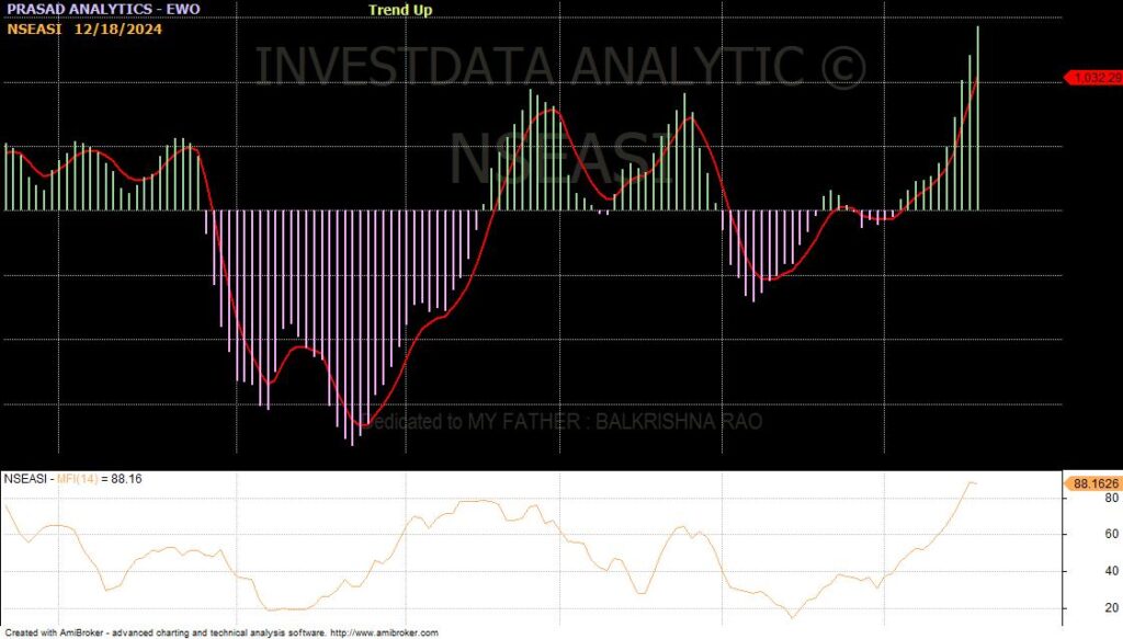 Money flow and other momentum tools were up, presenting buy opportunities for traders who understand the importance of buying low and selling high in any market condition in the midst ongoing volatility and buying sentiment. As index is set to breakout 100,586.40bps level to sustain uptrend, thereby creating the perfect setup for high probability of continuation to catch end of year repositioning at the right price. Also, as the index trades above the T-line and the two moving averages of 50-EMA and 50-SMA, this indicates strength in the midst of changing market fundamentals and technicals on the NGX and the economy.