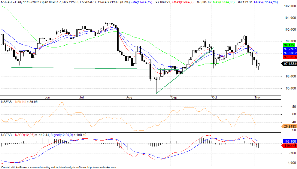 At the current accumulation phase on the NGX, market players are repositioning their portfolios along sectors and companies with potentials to release positive numbers on the strength of their earnings power at the end of Q4. Also, seasonal trends are likely to repeat themselves in these last months of the year which comes with seasonality and sentiment that makes it very important to market players across the globe. This is especially as retracement from strong support level of 96,684.90 basis points and 96,597.70bps after forming a bottoming tail and uptrend candles. This created the perfect setup for high probability swing trade to catch end of year repositioning.