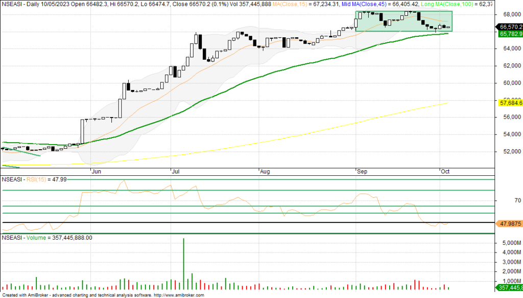 Market volatility continued as the benchmark NGX All-Share index closed higher on a low traded volume and positive market breadth, trading within the consolidation range. More companies continue to announce their closed period for Q3 financials expected to start pouring in any moment from next week for early filers. The index’s action adjusted up after the previous session’s selloffs and profit booking.
