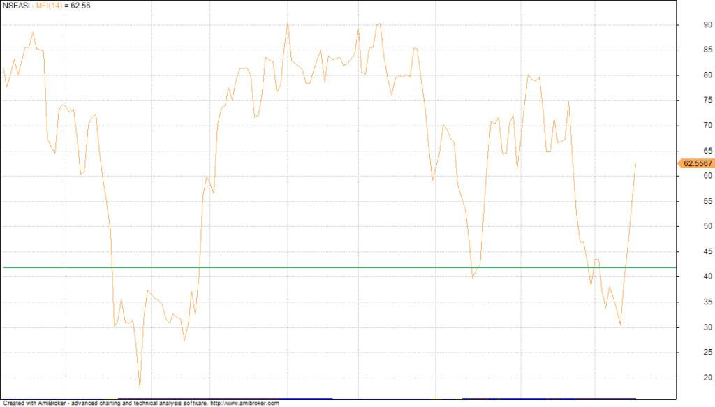 On the strength of improving transaction volume, positive momentum and flow of funds into equity space as revealed by the money flow index, investors and traders should continue to take advantage of the ongoing oscillation and pullbacks in some major sectors of the market to reposition their portfolios as more scorecards are expected in the market. Also, the market awaits positive catalysts in the form of policy statements from economic managers to boost confidence and perception, even with the ongoing decline in the fixed income market rates and yields in the midst rising inflation, which has gradually triggered flow of funds into the equity space, as revealed by money flow index, ahead of more Q3 financials.