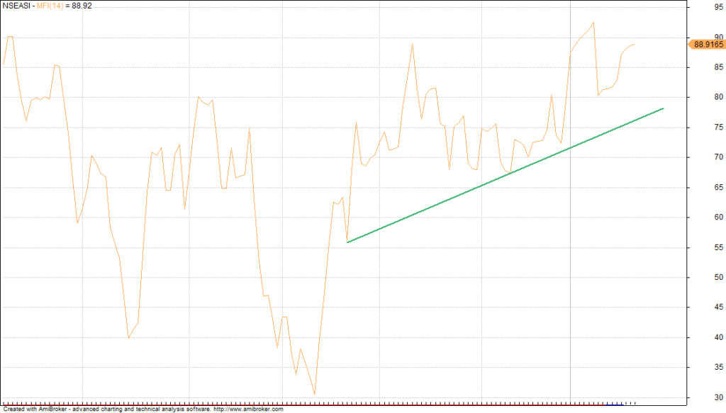The strength behind the trend or the session were revealed by momentum indicators, despite the overbought state of the market, as the ADX read 75.89, while RSI and Money Flow Index are looking flat to 94.18 and 88.92 points against the previous session 93.74 and 88.64 points respectively. This should be a concern for investors and smart traders as they trade caution. The trading volume pattern suggests hold and watch disposition of market players, as profit taking resurfaced again while investors accumulate more positions in some stocks as others investment windows returns remain below inflation and negative. Also, the anticipated financial market and economic reset in 2024, comes with huge opportunities to create wealth for smart investors and traders.