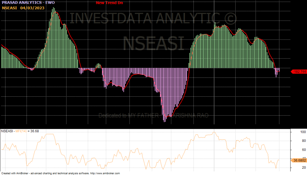 The recent market pullback slowed down, as the NGX index traded slightly above 50-Day Simple Moving Average and EMA, thereby creating opportunities for technical traders and discerning investors to take position as recent markdown stocks had rebounded on prevailing undervalue of these companies, as portfolio rebalancing and positioning for Q2 trading on the strength of expected 2023 Q1 earnings reports, even when it seems likely to be mixed numbers for Q1 as a result of low economic activities due to cash crouch.