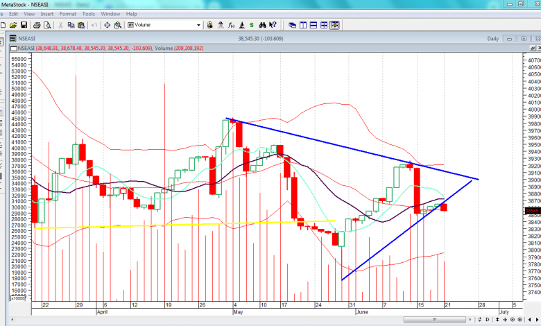 The composite NGXASI, at the end of Monday’s trading, lost 103.61bps to close at 38,545.30bps, from an opening level of 38,648.91bps, representing a 0.27% decline, just as market capitalization shed N54bn, closing at N20.09tr, from its opening value of N20.14tr, also representing a 0.27% value loss.