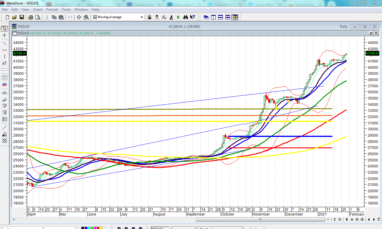 Also on Thursday, the market finally broke out the of 42,000 psychological line, helped by the influx of unaudited corporate earnings offering n insight into what investors should expect from the 2020 December year-end audited earnings reports. This is in the midst of positive sentiments that have been helped by the decision of the Central Bank of Nigeria Monetary Policy Committee (MPC) to leave rates unchanged, following which funds continue to enter the market as indicated by money flow index and sentiment report. It is safe to expect mixed trends and sentiments, with the NSE’s index action set to breakout 2017 highs.