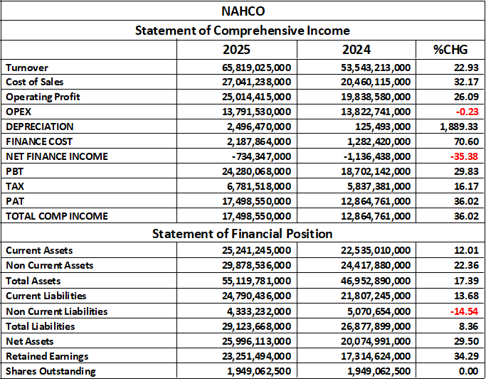 Nigerian Aviation Handling Company Plc (NAHCo) demonstrates a fundamentally strong performance profile, underpinned by excellent profitability, solid operational efficiency, and improved financial discipline. The company’s margins, returns on equity, and asset utilization indicate a high-quality earnings base, while better cost control and working capital management support operational resilience. Additionally, it’s evolving dividend strategy—combining cash payouts with a 1-for-7 scrip issue reflects a deliberate balance between rewarding shareholders and preserving capital for growth.