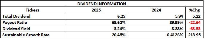 - Share Price Growth: 2025: ₦193.00 and 2024: ₦66.90 for a percentage change of 188.49%: This is a massive price rally within the two financial years compared, showing a strong market confidence in the stock. The stock is already re-rated significantly.
