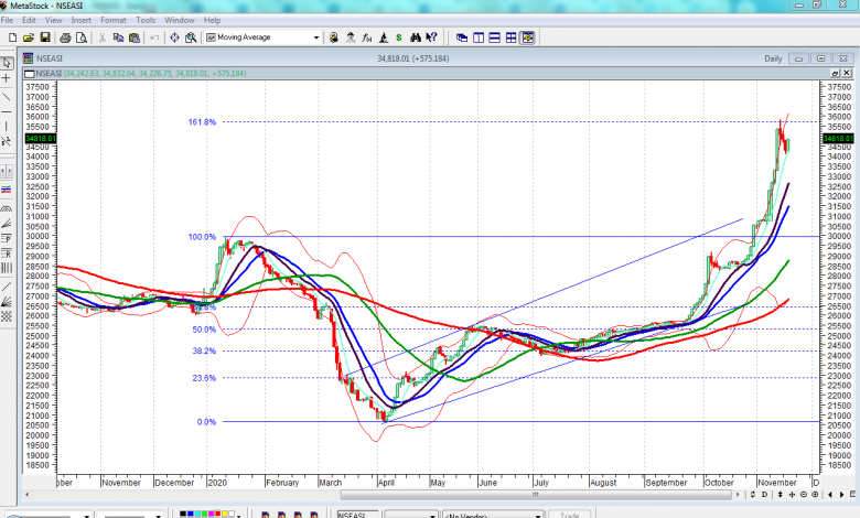 We expect the market to maintain the turn up on the positive news of Purchasing ManagerIndex crossing the 50 points in November to 50.2 points from 49.6 points in October after six months of contraction according to CBN reports. This is the first positive hint of some growth in a long while, even as all eyes are on banks’ Q3 numbers and next week’s MPC meeting outcome, just as technical indicators reveal overbought on a weekly and daily chart, while RSI read 70 points and above, a situation that supports correction. However, the strong and faster recovery may continue, depending on market forces going forward. This will depend on the quality of Q3 score-cards presented, especially by the tier-1 banks, even as analyses of numbers released so far have helped repositioning of investors’ portfolios on the strength of sector and company’s performances.