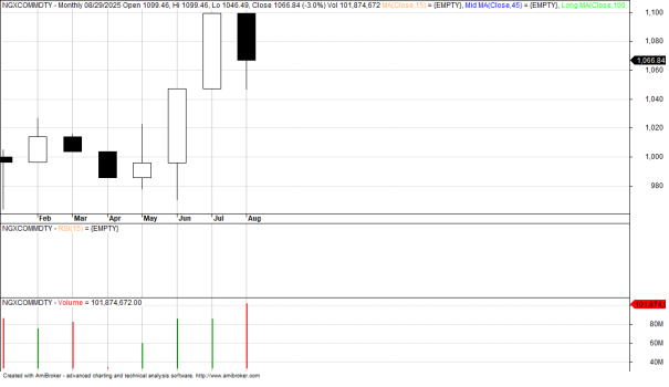 The Nigerian Exchange (NGX) sustained a bull transition for the month of August with marginal gain, thereby extending the four consecutive months of rally in the face of mixed sentiment, profit taking and selloffs that pulled the benchmark NGX All-Share index lower to close flat in the last three sessions. There were noticeable strong rallies in insurance and consumer goods stocks that lifted market sentiment in the midst of sectoral rotation that weighed down some sectors like mortgage, financial, and manufacturing counters. The market-maintained resilience despite volatility, with low-priced equities in the insurance space dominating the advancers’ table during the period.