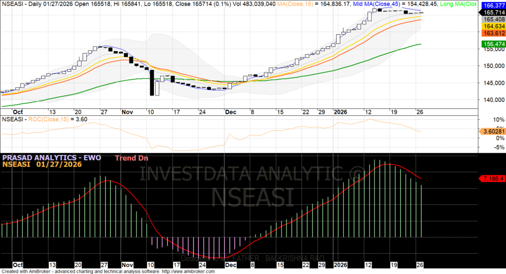 From a technical standpoint, the market remains in a consolidation phase near its historical highs. The benchmark index continues to trade above its key short- and medium-term moving averages, keeping the medium-term trend positive. However, momentum indicators such as the Relative Strength Index suggest moderating strength, implying that upside in the near term may be gradual rather than sharp. The 165,000-point region remains an important support area, while a decisive break above recent highs would be required to unlock a stronger upward move.