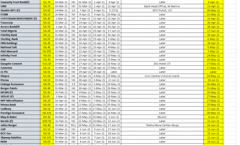 Home/Equities/NGX Corporate Actions As Of Friday, May 7, 2021 Equities NGX Corporate Actions As Of Friday, May 7, 2021 EditorMay 8, 2021 33 Less than a minute Facebook Twitter WhatsApp Post Views: 377 EditorMay 8, 2021 33 Less than a minute Facebook Twitter WhatsApp Facebook Twitter WhatsApp Share via Email
