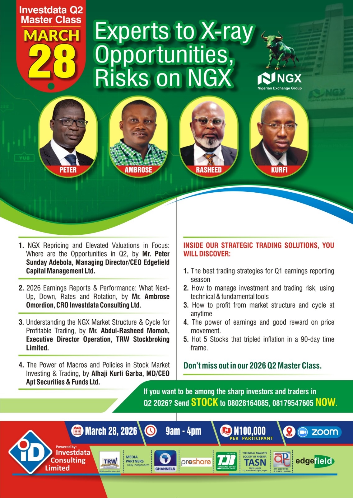 To navigate the rest of the quarter and year profitably using fundamental and technical analysis, join investdata’s live sessions at noon every trading day “and also get investdata technical toolbox to play the current state of the market do suggest that discerning investors are gradually becoming greedy, while others are fearful, as seen in the recent selloffs. Despite the mixed volume pattern witnessed in recent days, it is time to shop for undervalued stocks, sector rotation, go for defensive stocks at the next insider playing opportunity.