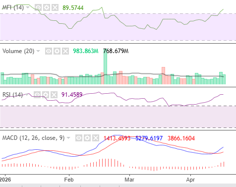 Despite profit-taking, bullish volume remained solid. The Money Flow Index (MFI) is above 50, reading 88.09. This performance reveals the continuous bullish appetite for this index and solid liquidity.